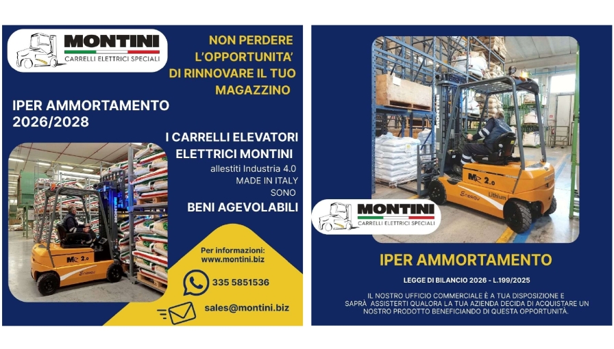 Approfitta di questa opportunità per beneficiare dell’iper ammortamento nell’acquisto di carrelli elevatori elettrici MONTINI per la tua azienda!